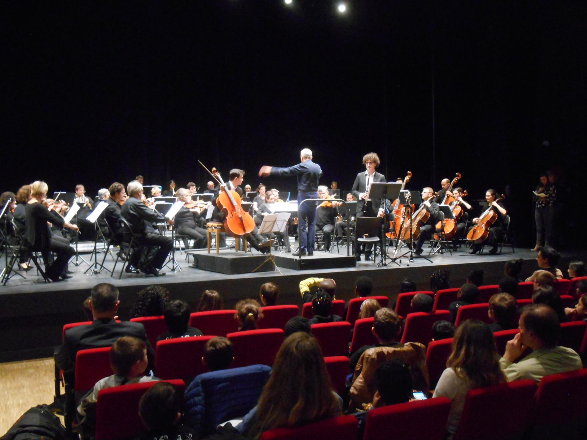 A travers un concerto pour clarinette, violoncelle et orchestre de la jeune compositrice Camille Pépin, présente dans la salle, et une œuvre de Maurice Ravel les jeunes auditeurs dont c'était, pour la plupart, un premier contact avec ce genre de musqiue ont découvert les différentes familles instrumentales d'un orchestre symphonique.